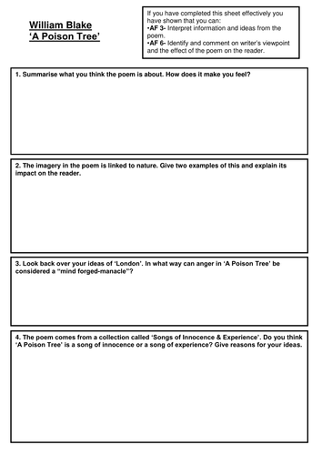 Consider the questions and give brief answers to these in the frames. Web The poem A Poison Tree was first published in William Blakes Songs of Experience in 1794.